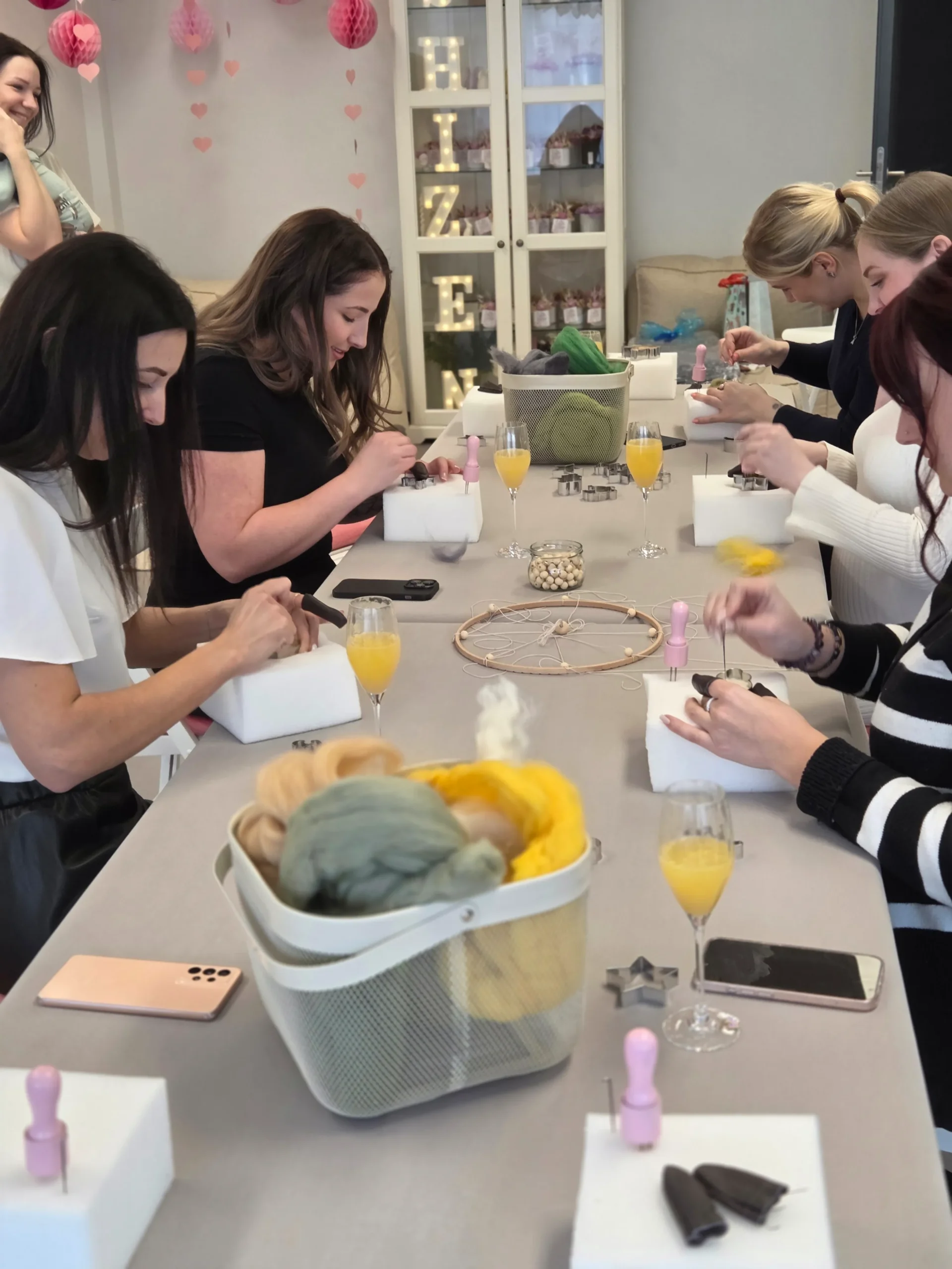 Töötoa hinnas sisaldub Mimosa või alkoholivaba tervitusjook ja kerge suupistevaagen (juust, vinnuvorst, viinamarjad, kreekerid) . Soovi korral võid kaasa võtta oma lemmikjoogi või ampsu – et atmosfäär oleks veelgi vabam ja mõnusam. 🎈Soovi korral hinnas sisaldub ka vastavalt osalejate arvule valitud põhivärvi õhupallid, mis asetan ruumi temaatika loomiseks.