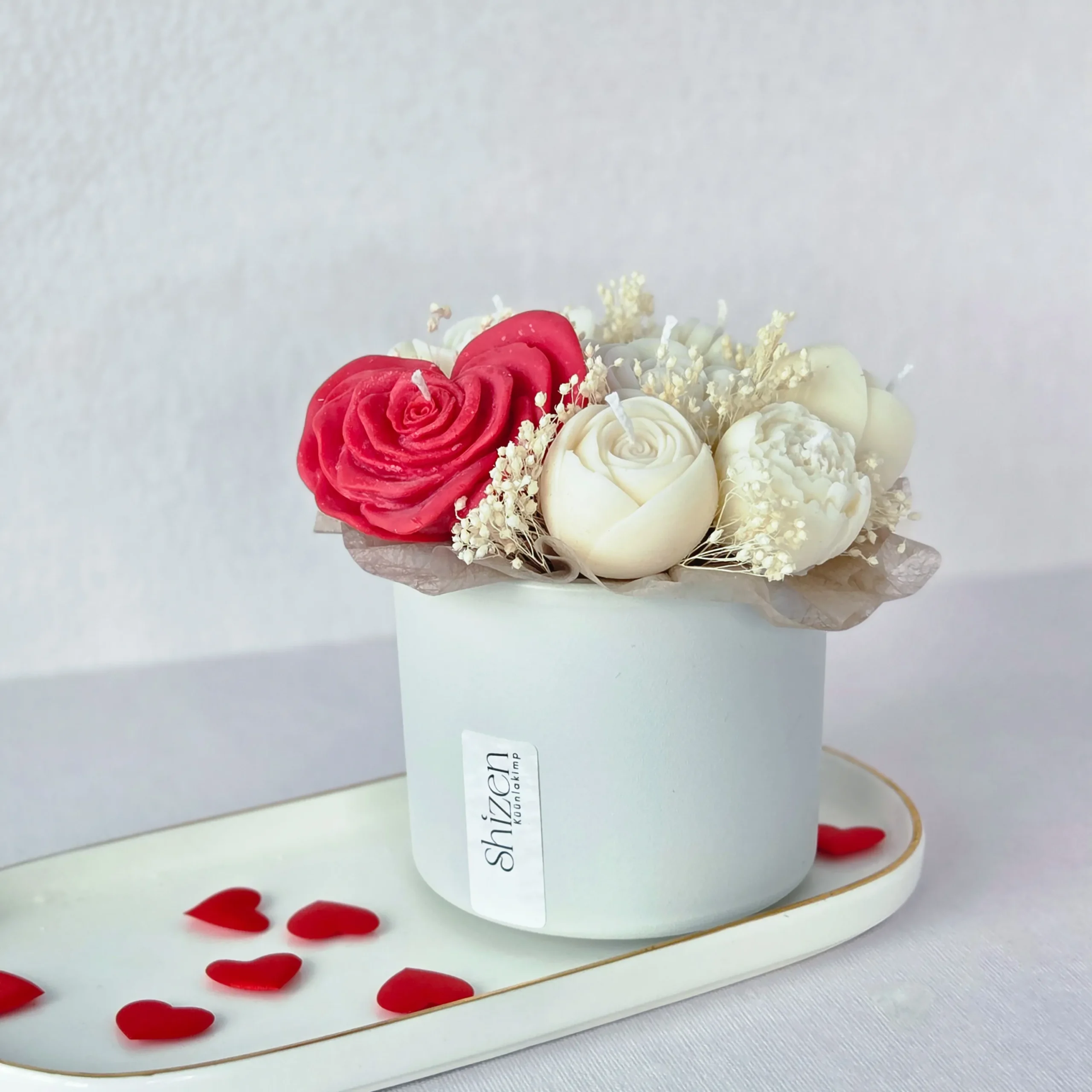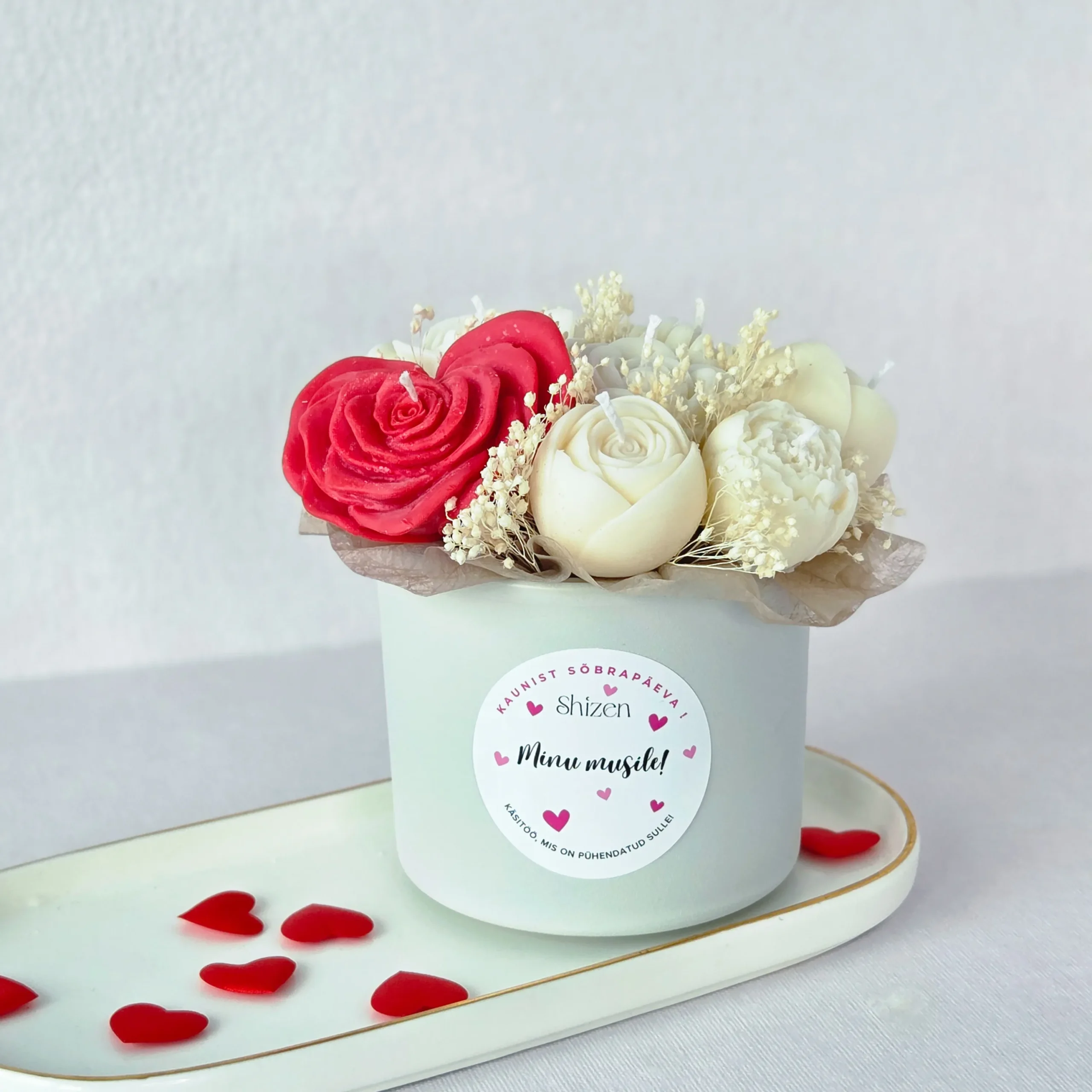 Küünlakimp LOVE on ideaalne Valentini päeva kingitus, mis kestab – erinevatest lilleõie kujulisest küünlast koosnev käsitööna valminud kimp näeb välja kui lillekimp, aga ei närtsi kunagi. Valmistatud looduslikust sojavahast, õrna aroomi ja kauni välimusega, toob see rõõmu päevast päeva. Iga detail on hoole ja südamega tehtud . Kingi meeleolu, ilu ja soe hetk, mis jääb püsima.